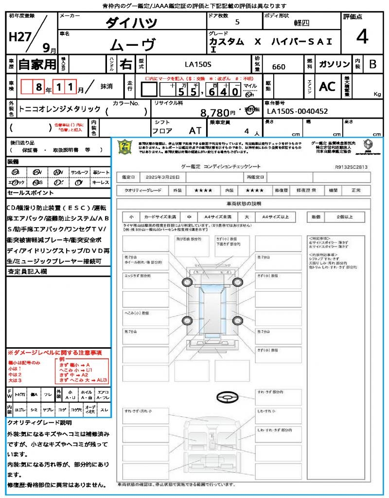 | Grade | カスタム X ハイパーSAII | Model Code | LA150S |