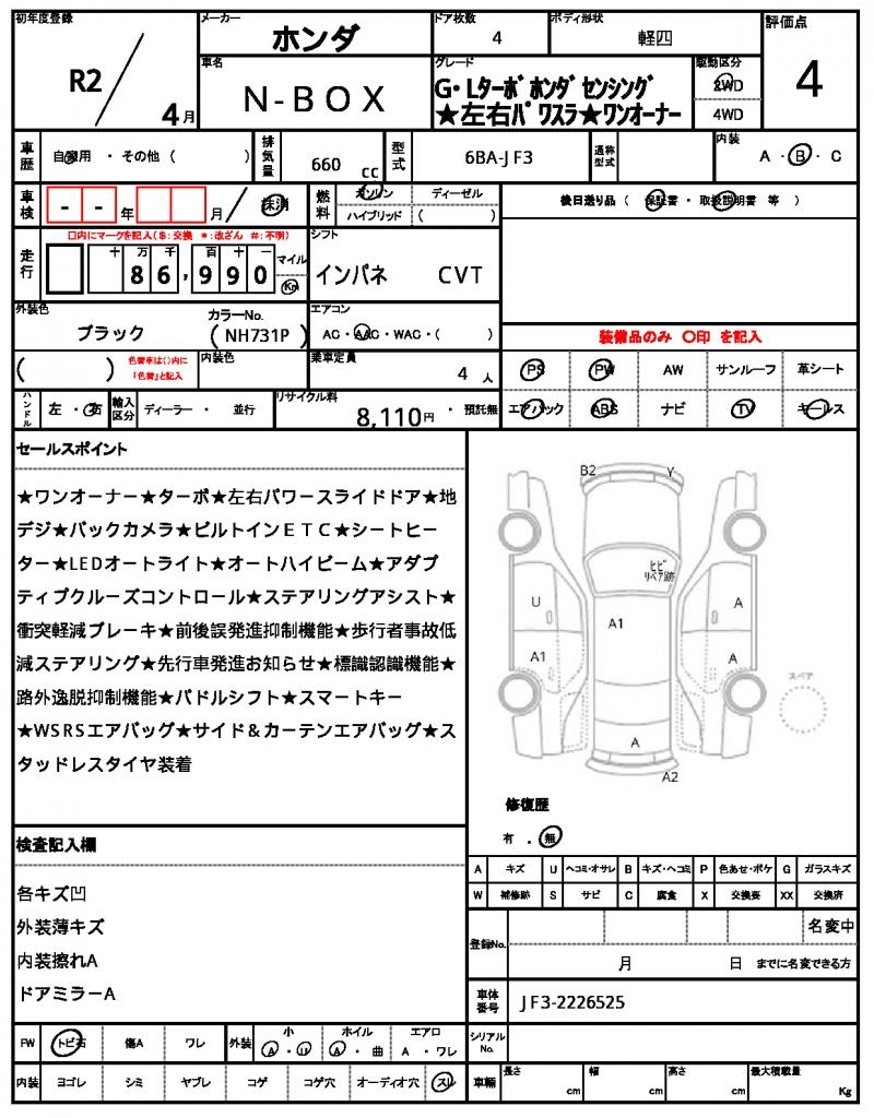 | Manufacturer | HONDA | Model | N-BOX |