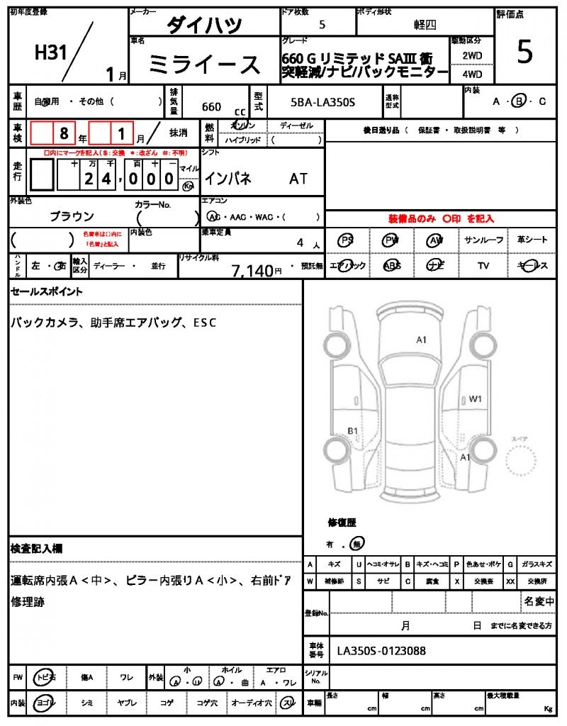 | Grade | 660 G リミテッド SA? | Model Code | 5BA-LA350S |