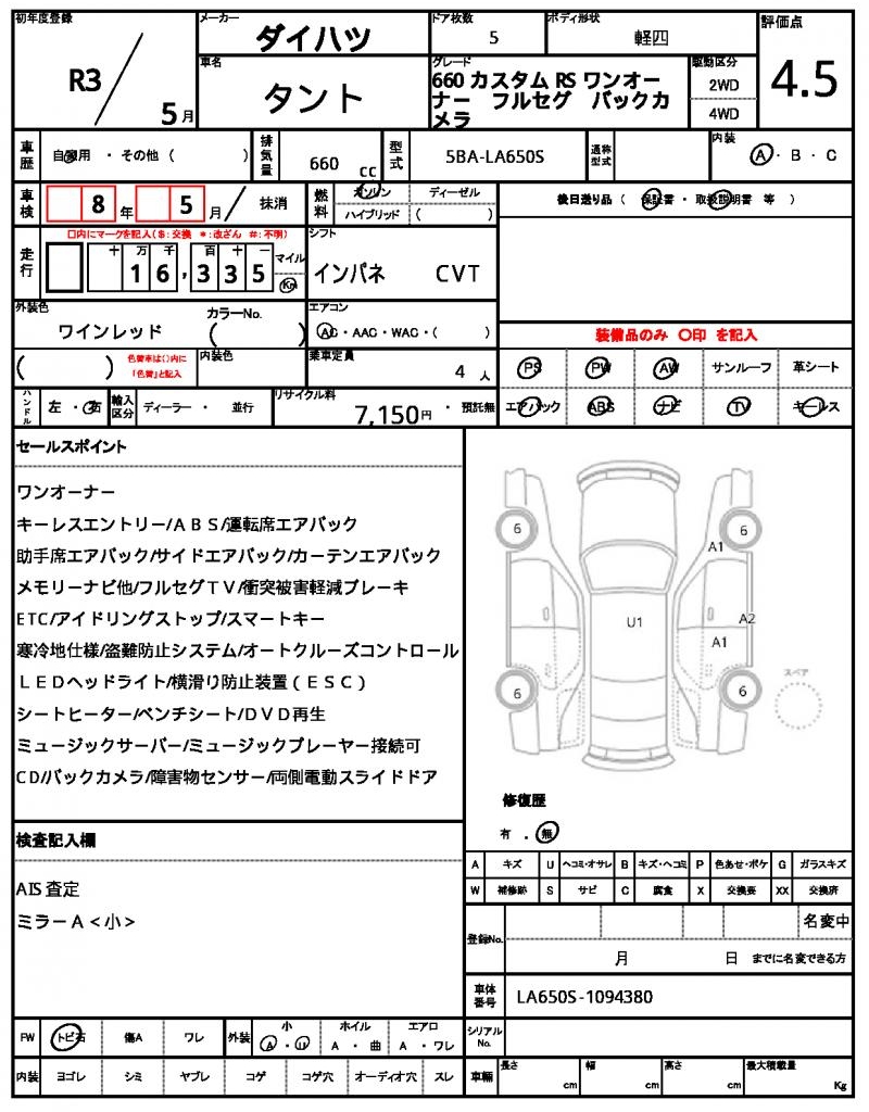 | Grade | 660 カスタム RS | Model Code | 5BA-LA650S |