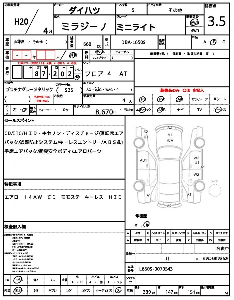 | Registration Date | 2008/04 | Chassis Number | L650S-0070543 |