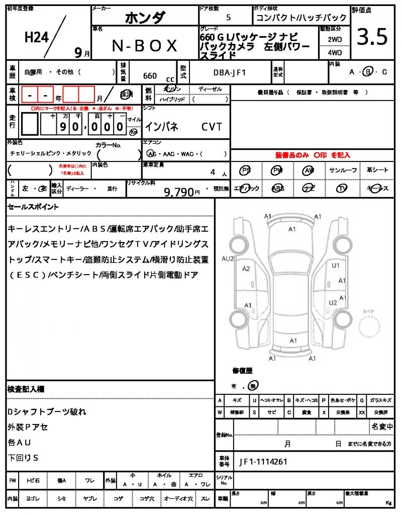| Registration Date | 2012/09 | Chassis Number | JF1-1114261 |