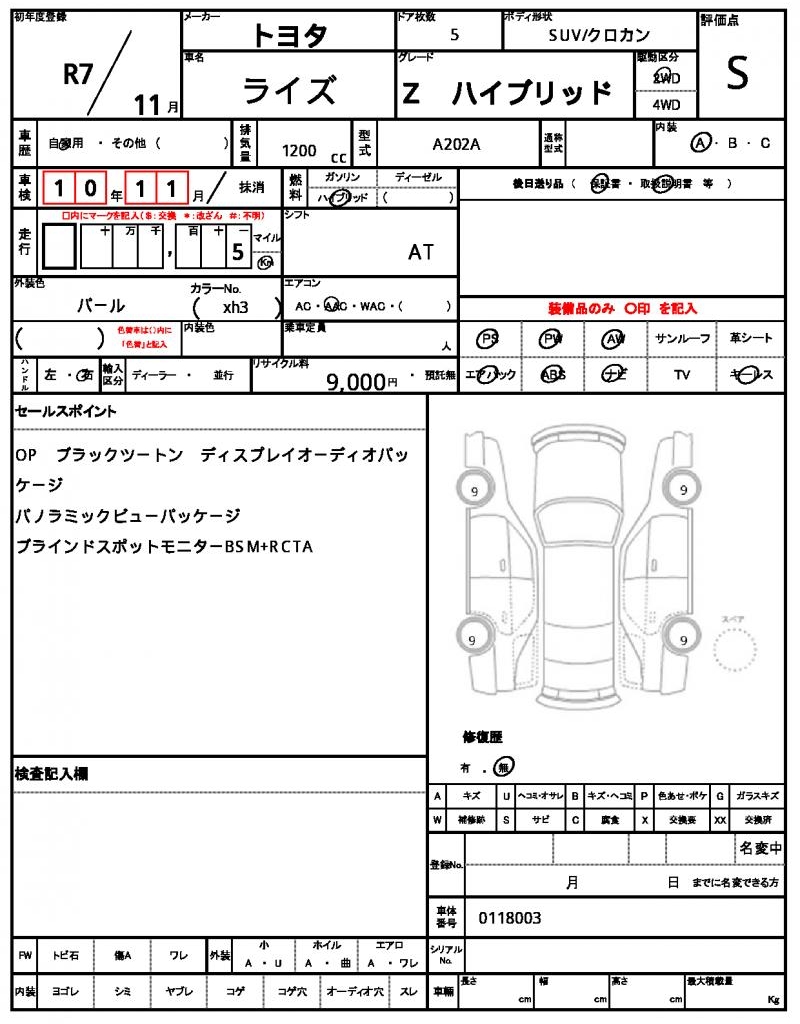 | Manufacturer | TOYOTA | Model | RAIZE |
