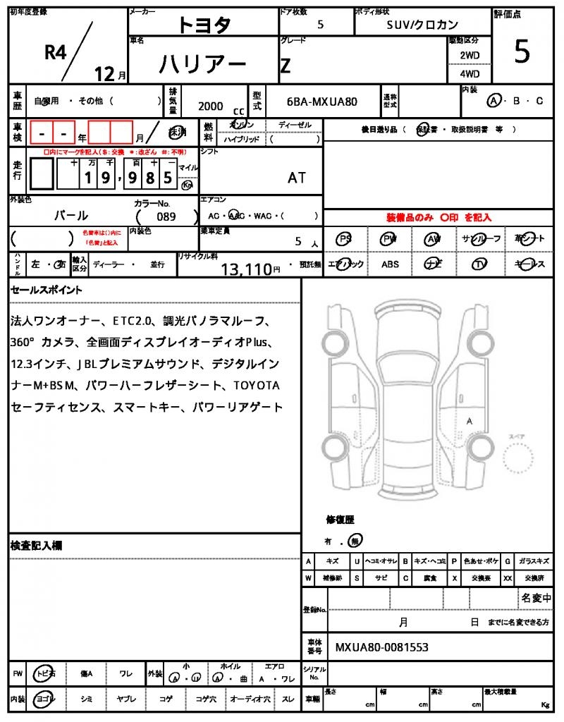 | Manufacturer | TOYOTA | Model | HARRIER |