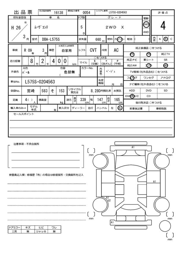| Grade | 2WD X | Model Code | DBA-L575S |