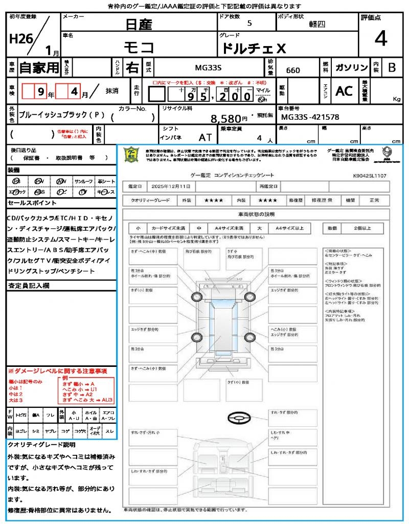 | Mileage | 95,200 km | Engine Size | 660 cc |