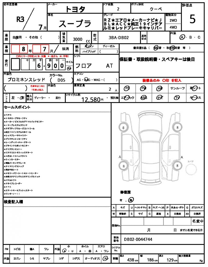 | Manufacturer | TOYOTA | Model | SUPRA |