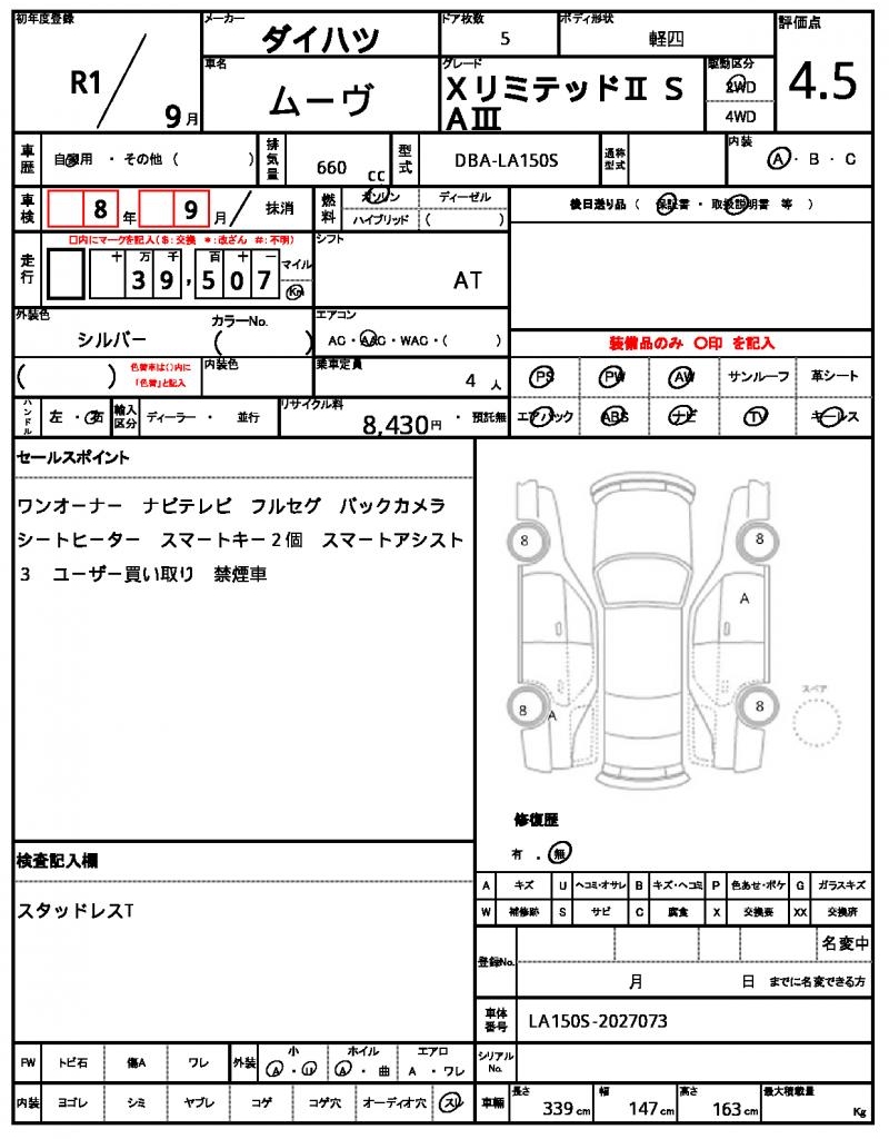 | Grade | Xリミテッド? SA? | Model Code | DBA-LA150S |