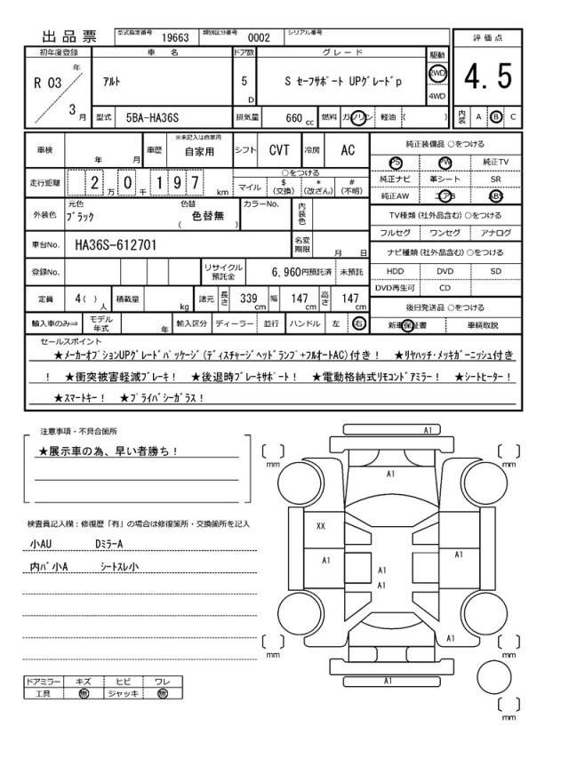 | Grade | S セーフサポート UPグレードp | Model Code | 5BA-HA36S |