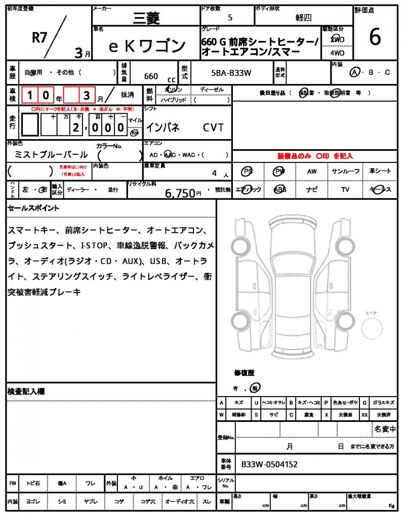 | Registration Date | 2025/03 | Chassis Number | B33W-0504152 |