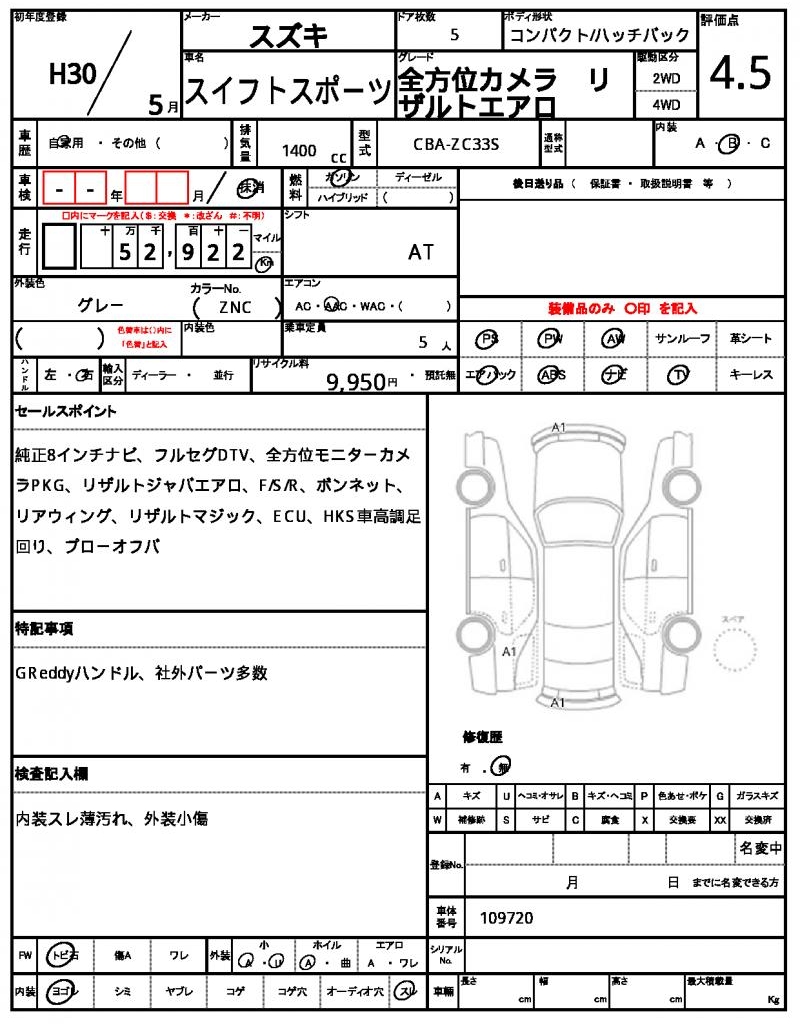 | Manufacturer | SUZUKI | Model | SWIFT SPORT |
