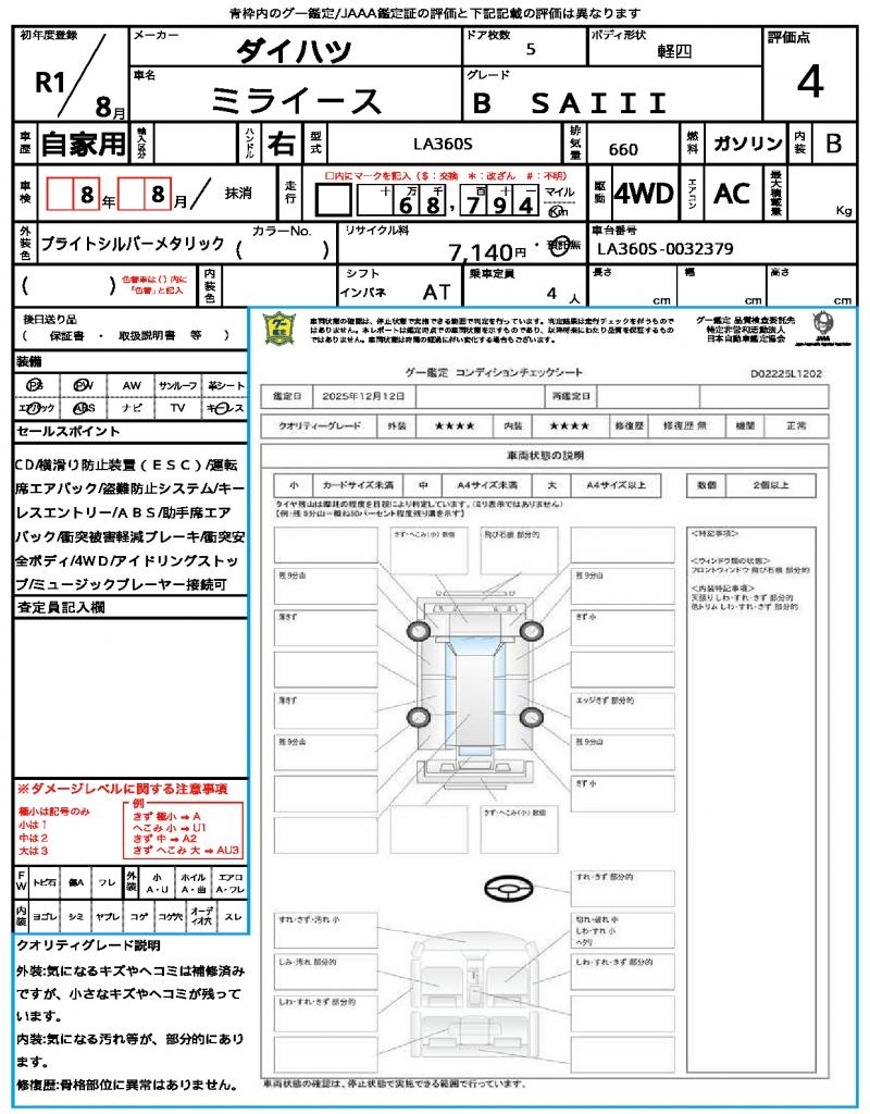 | Body Type | Kei Car (Mini Vehicle) | Color | Other |