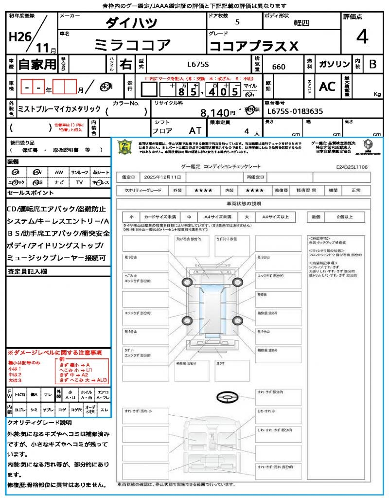| Manufacturer | DAIHATSU | Model | MIRA COCOA |