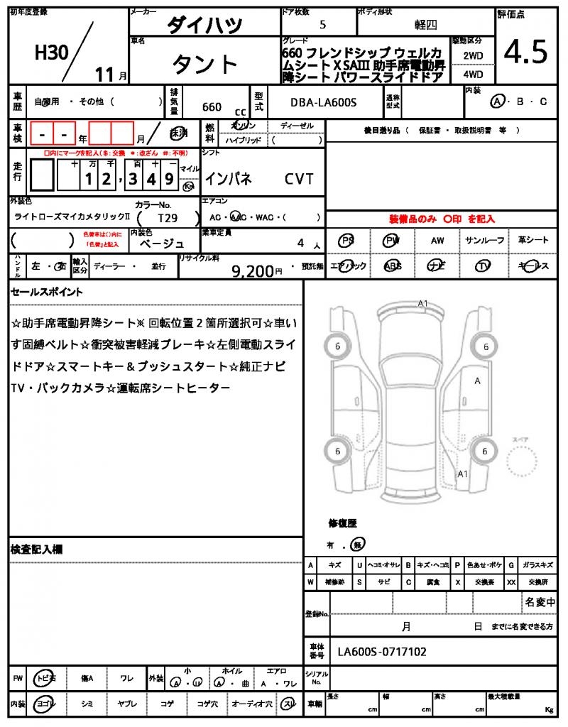 | Grade | 660 フレンドシップ ウェルカムシート X SAIII | Model Code | DBA-LA600S |