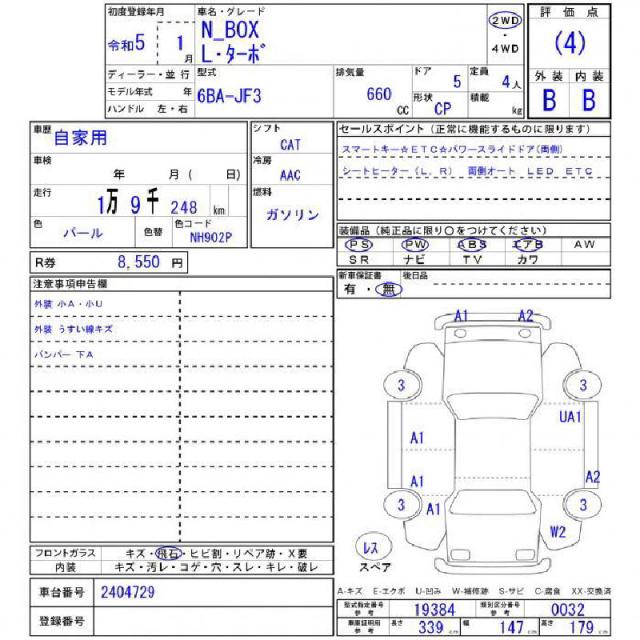 | Grade | N BOX 660 L・ターボ | Model Code | 6BA-JF3 |