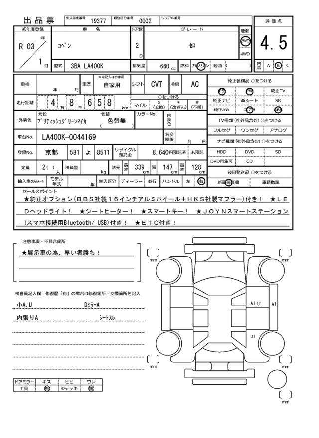 | Manufacturer | DAIHATSU | Model | COPEN |