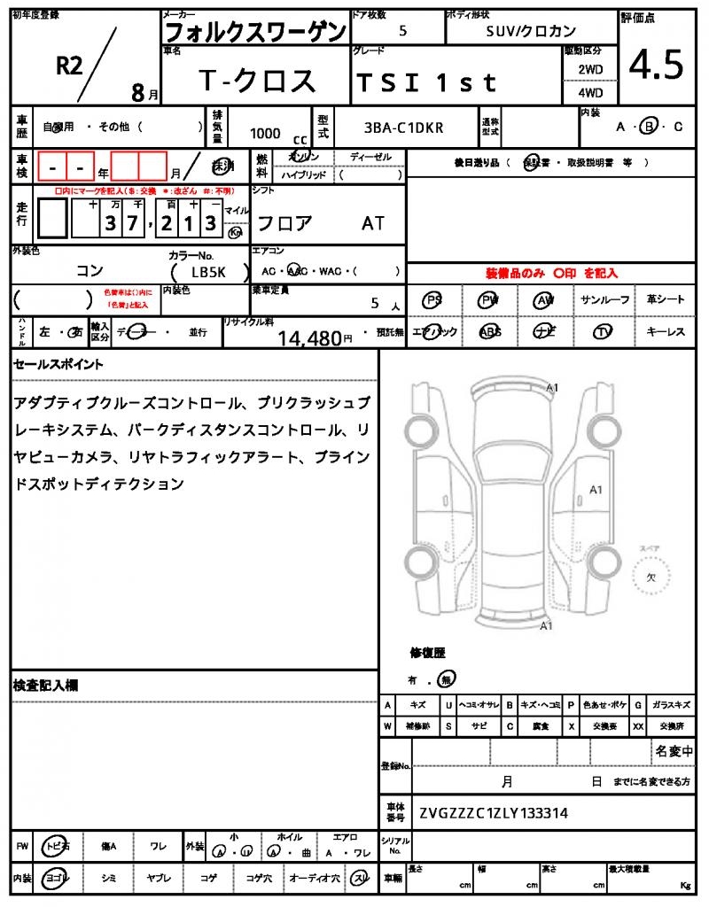 | Manufacturer | VOLKSWAGEN | Model | T-CROSS |