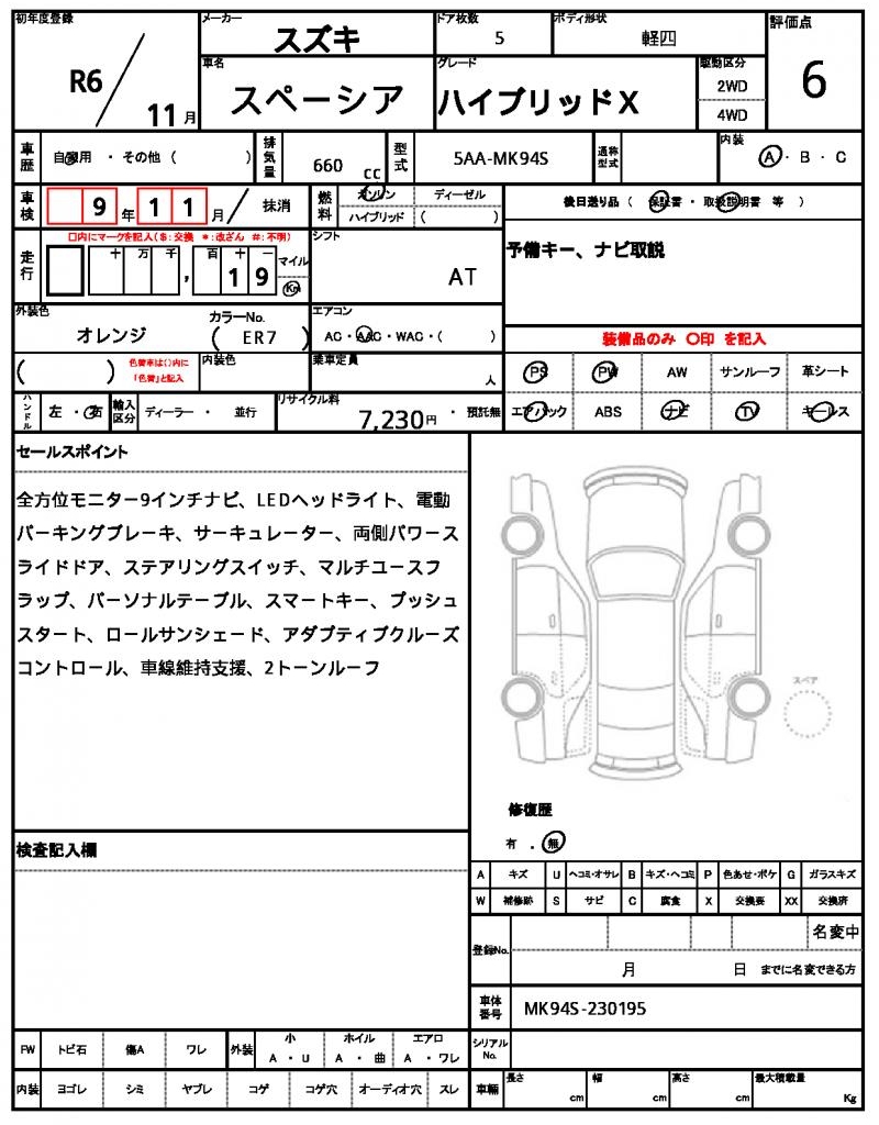 | Grade | ハイブリッドX | Model Code | 5AA-MK94S |