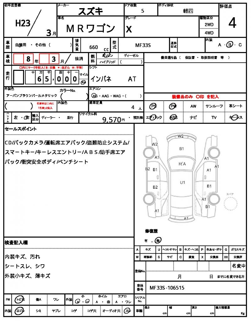 | Registration Date | 2011/03 | Chassis Number | MF33S-106515 |