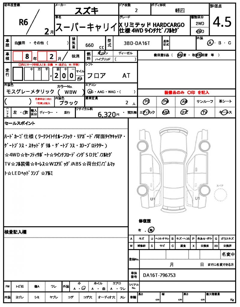 | Grade | X リミテッド HARDCARGO仕様 4WD | Model Code | 3BD-DA16T |