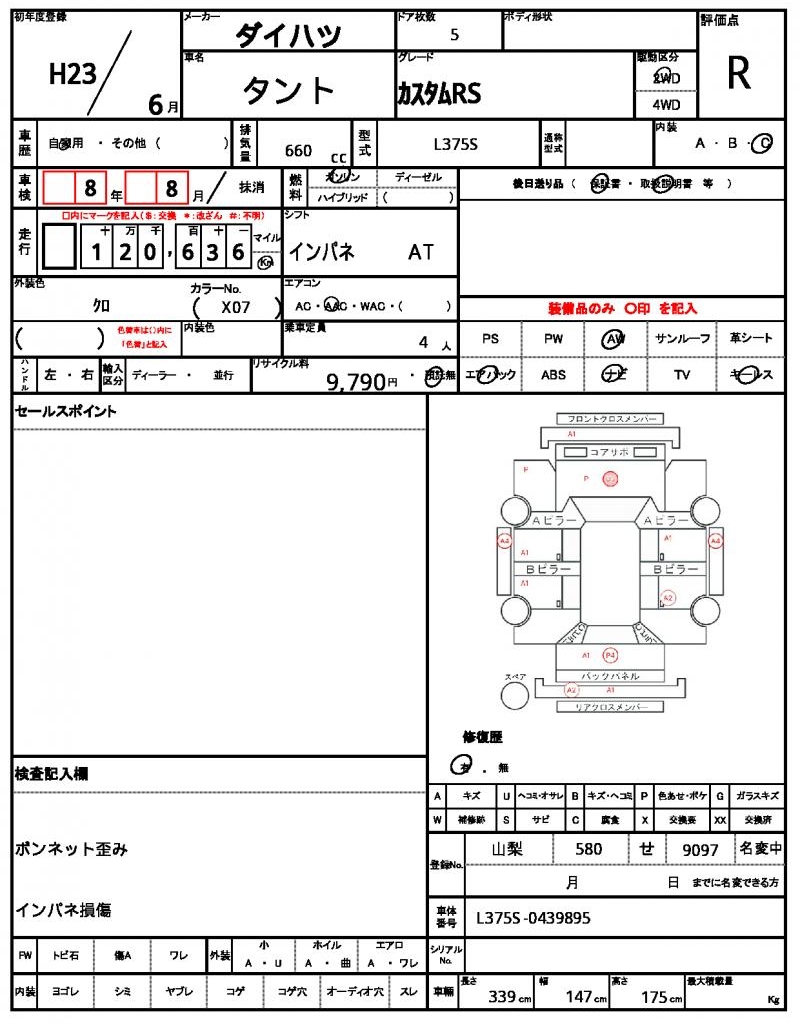 | Grade | カスタムRS | Model Code | L375S |