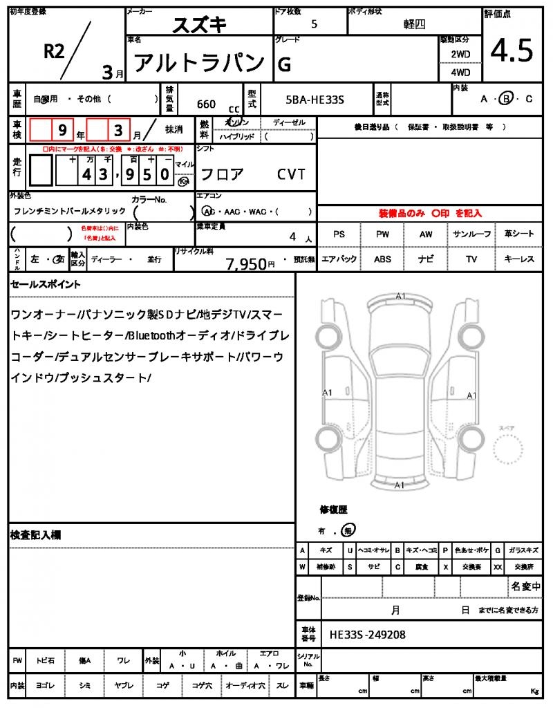 | Mileage | 43,950 km | Engine Size | 660 cc |