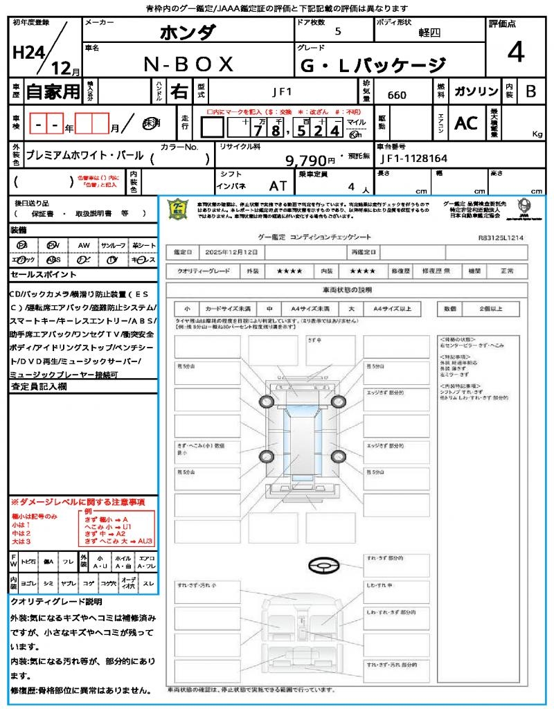 | Grade | G・Lパッケージ | Model Code | JF1 |