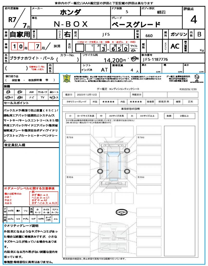| Manufacturer | HONDA | Model | N-BOX |