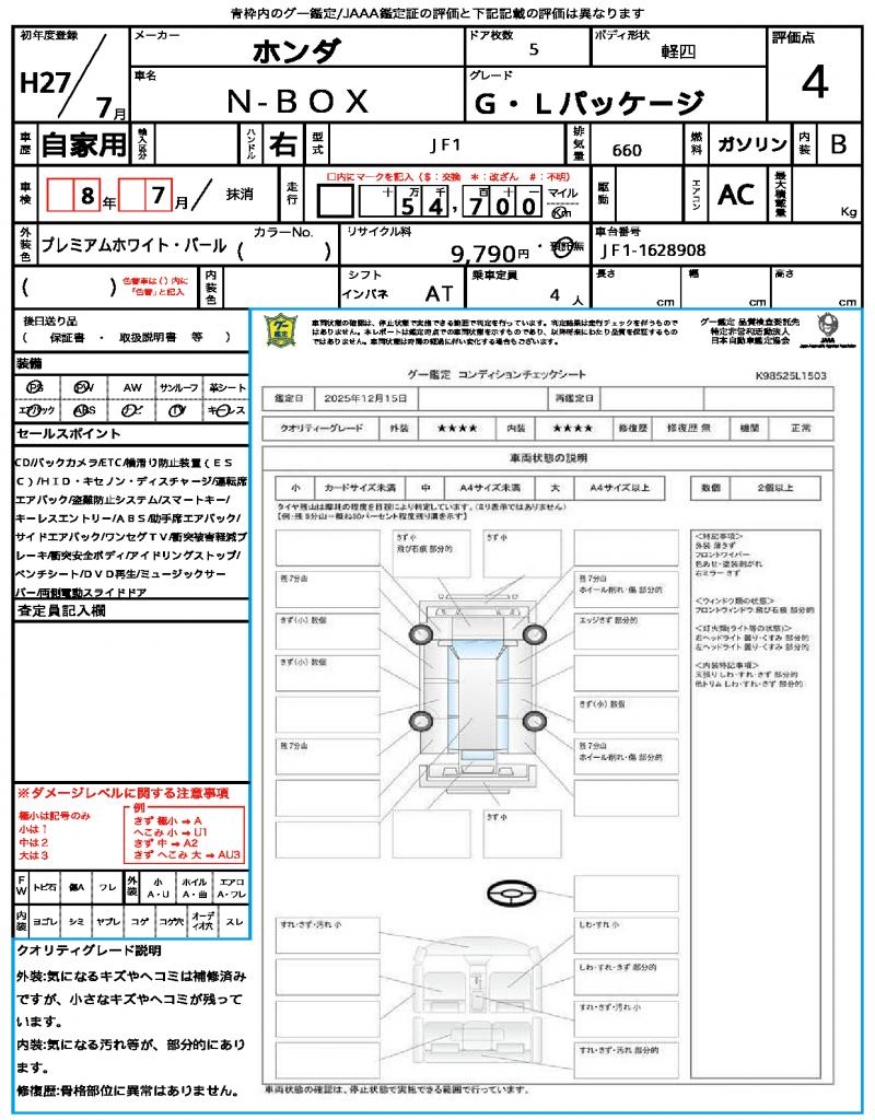 | Grade | G・Lパッケージ | Model Code | JF1 |