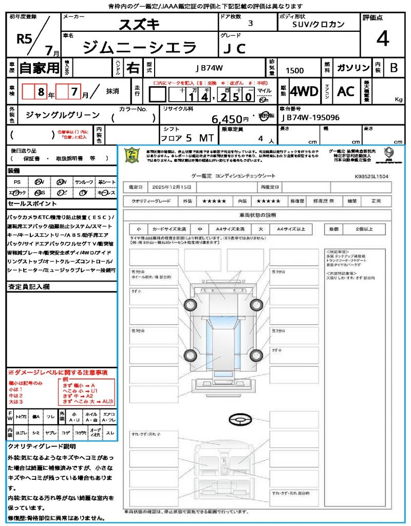| Manufacturer | SUZUKI | Model | JIMNY SIERRA |