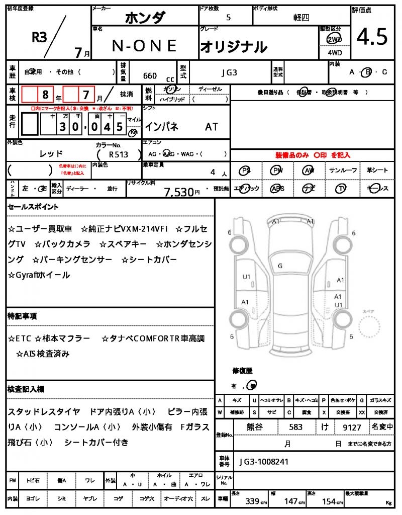 | Manufacturer | HONDA | Model | N-ONE |
