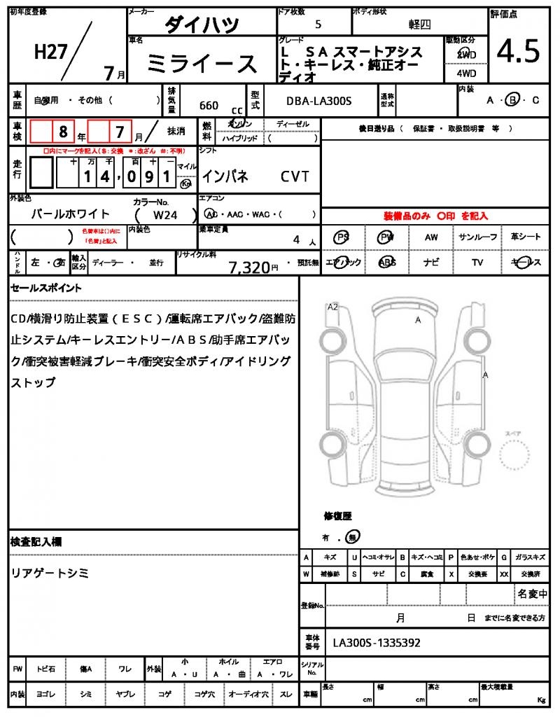 | Registration Date | 2015/07 | Chassis Number | LA300S-1335392 |
