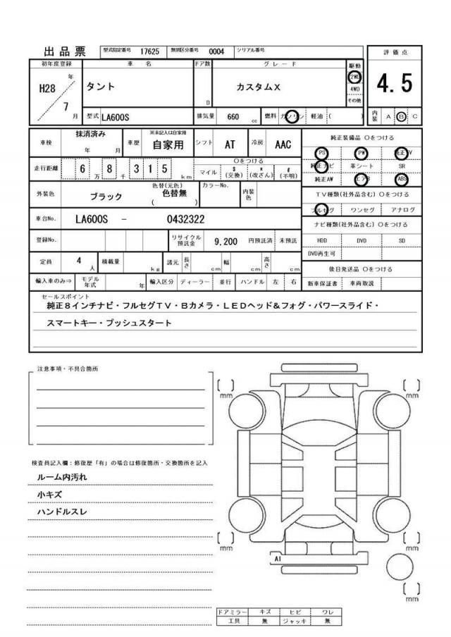 | Grade | カスタムX | Model Code | LA600S |