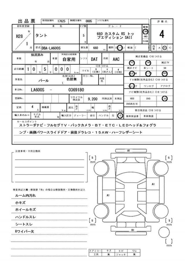 | Grade | カスタムRS トップエディションSAII | Model Code | LA600S |