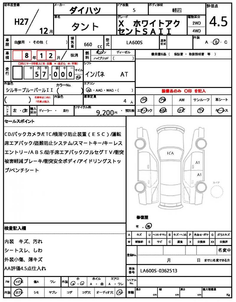 | Grade | X ホワイトアクセントSAII | Model Code | LA600S |