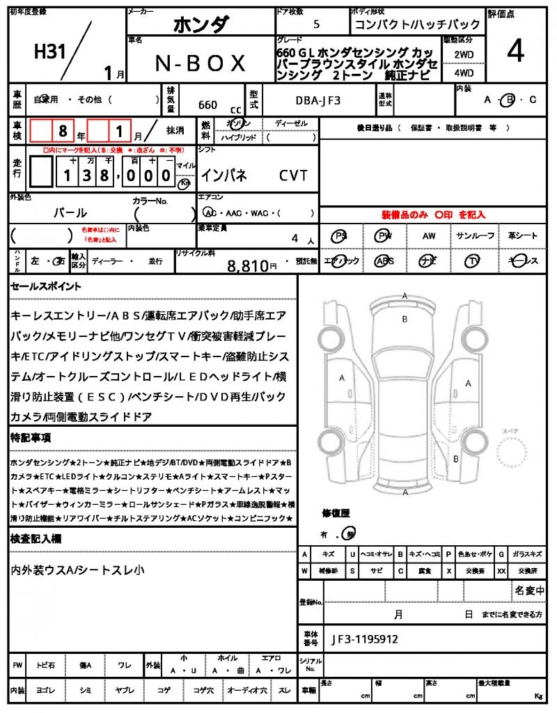 | Manufacturer | HONDA | Model | N-BOX |