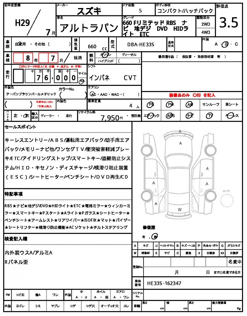 | Grade | 660 Fリミテッド | Model Code | DBA-HE33S |