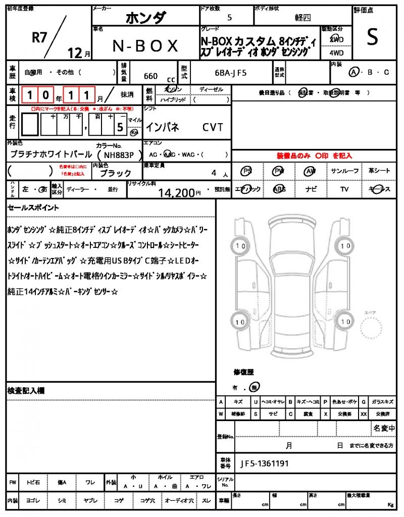 | Grade | N-BOX カスタム | Model Code | 6BA-JF5 |