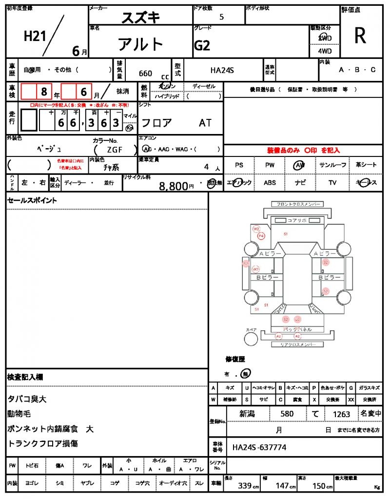 | Mileage | 66,363 km | Engine Size | 660 cc |