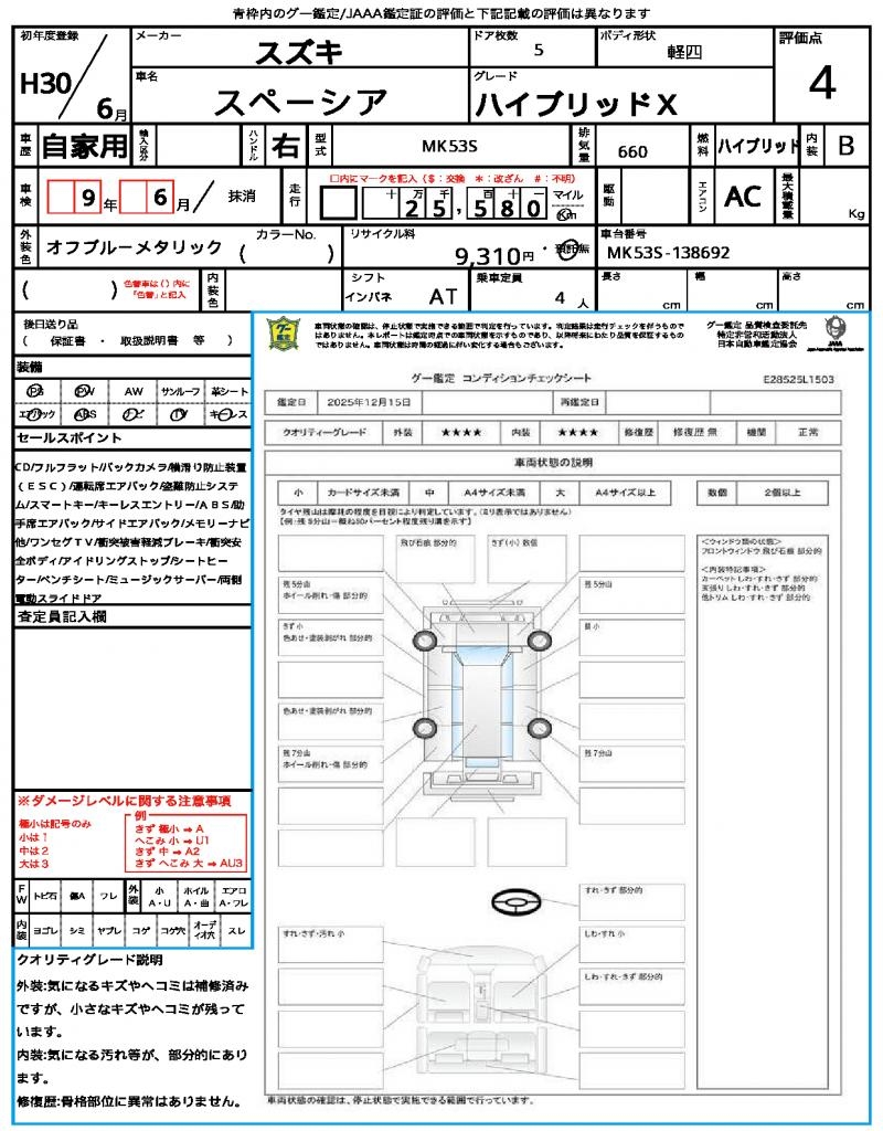 | Grade | ハイブリッドX | Model Code | MK53S |