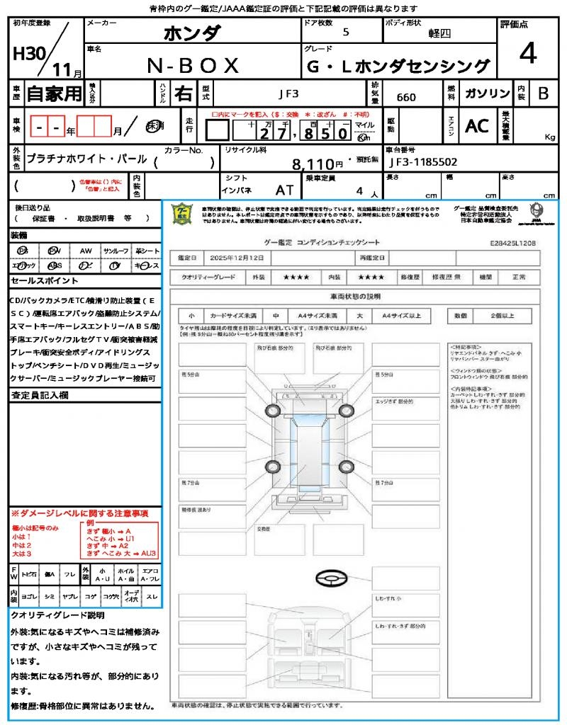 | Grade | G・Lホンダセンシング | Model Code | JF3 |