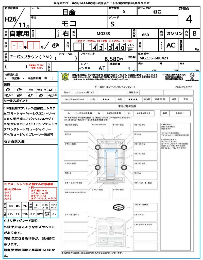 | Registration Date | 2014/11 | Chassis Number | MG33S-686421 |