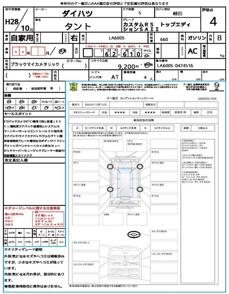 | Grade | カスタムRS トップエディションSAII | Model Code | LA600S |