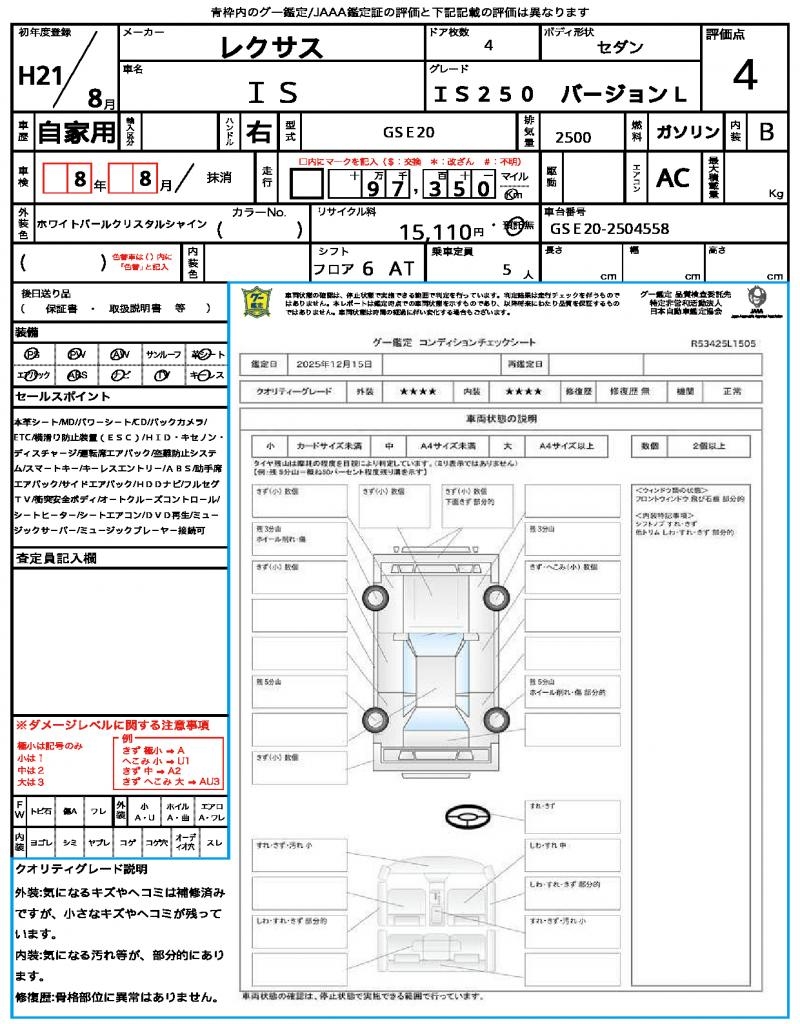 | Grade | IS250 バージョンL | Model Code | GSE20 |