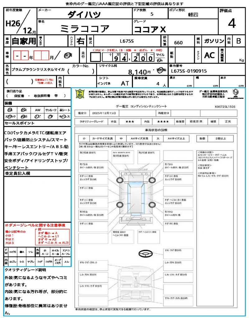 | Mileage | 94,200 km | Engine Size | 660 cc |