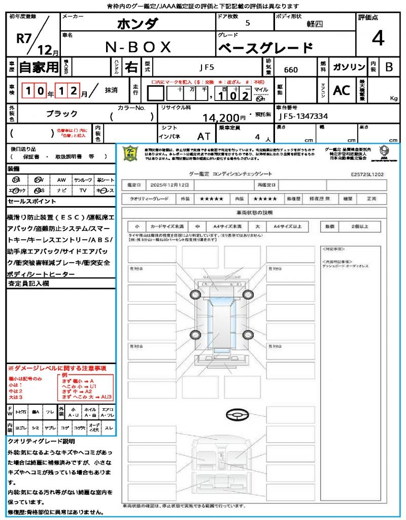 | Manufacturer | HONDA | Model | N-BOX |