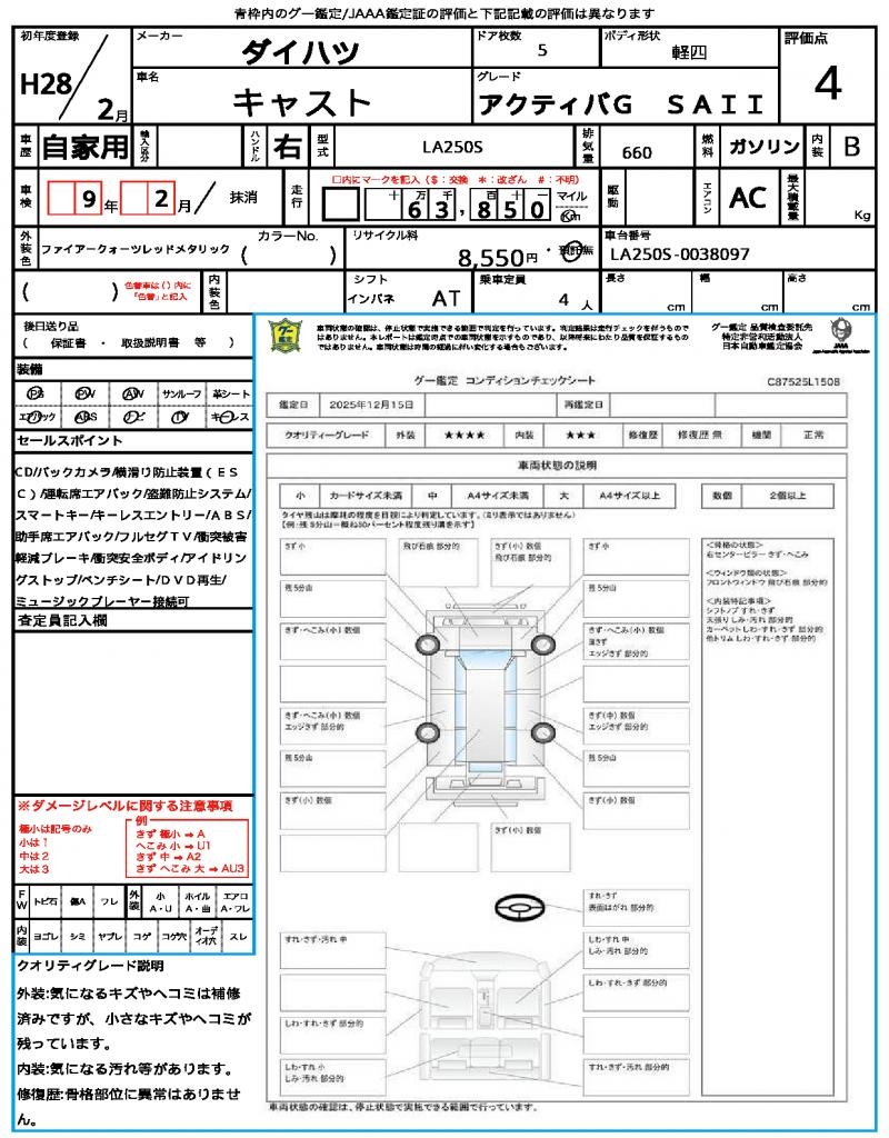 | Mileage | 63,850 km | Engine Size | 660 cc |