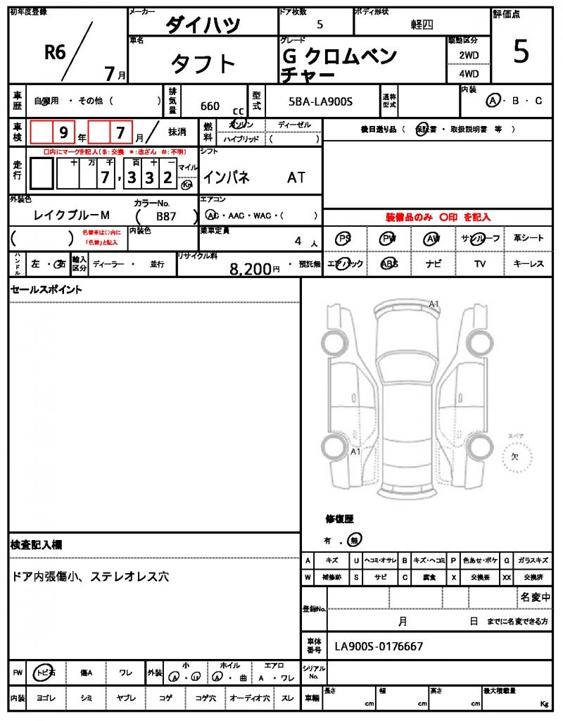 | Grade | G クロムベンチャー | Model Code | 5BA-LA900S |