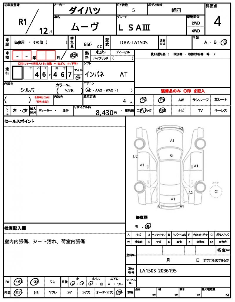 | Grade | L SA? | Model Code | DBA-LA150S |