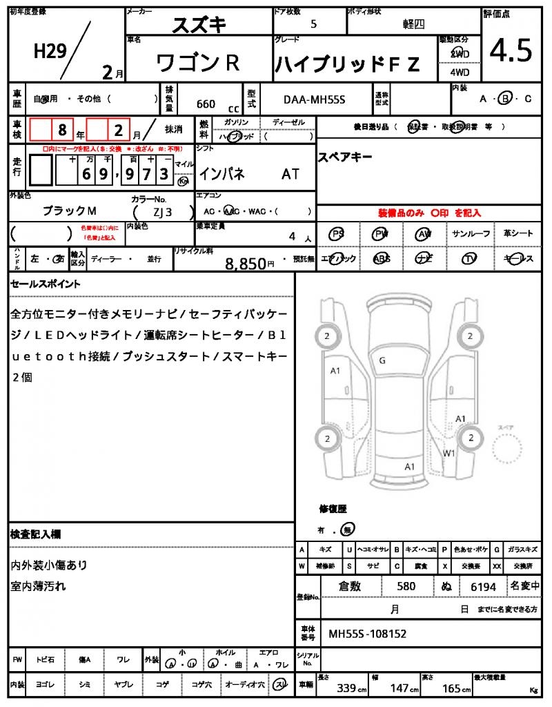 | Grade | ハイブリッドFZ | Model Code | DAA-MH55S |